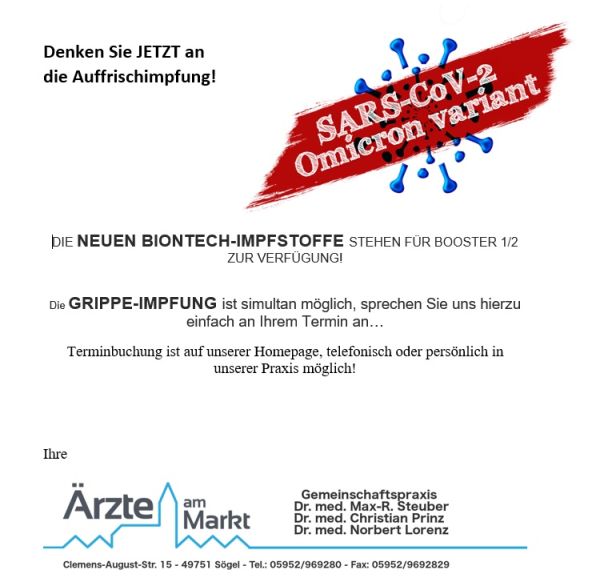 Die neuen, angepassten Biontech-Impfstoffe stehen für Booster 1/2 zur Verfügung!